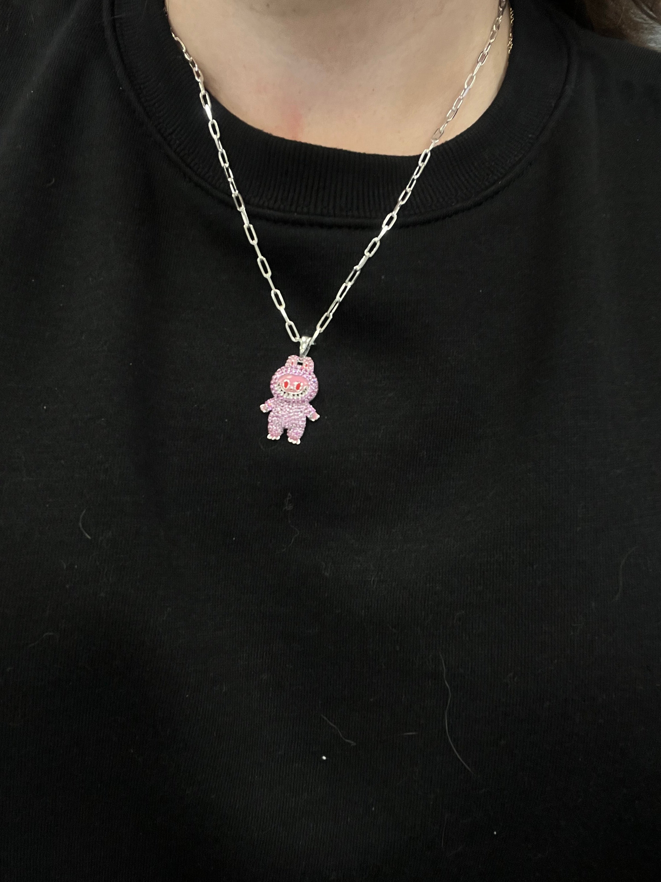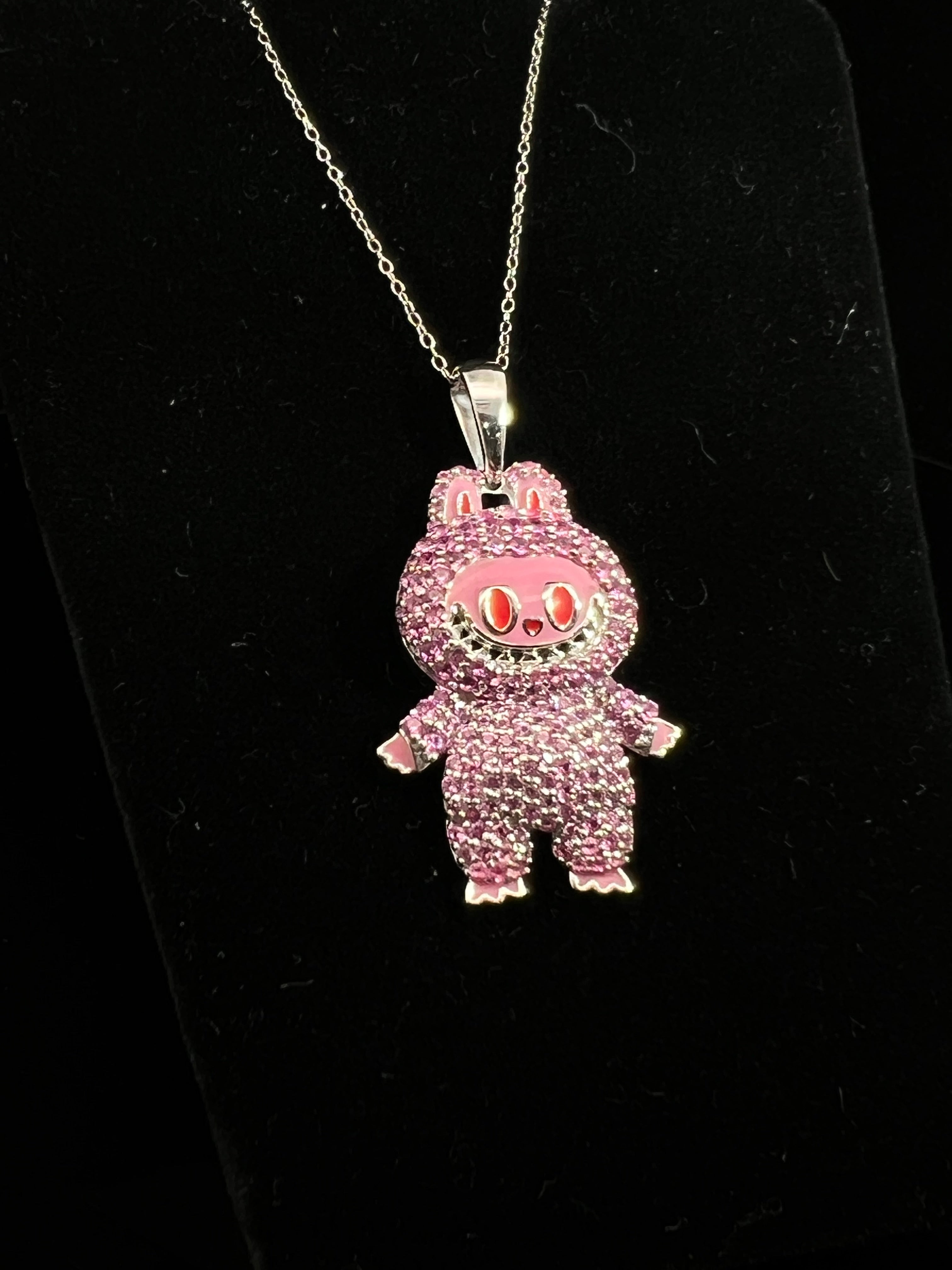 Labubu Charm Necklace in Pink Sapphire