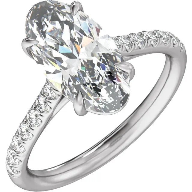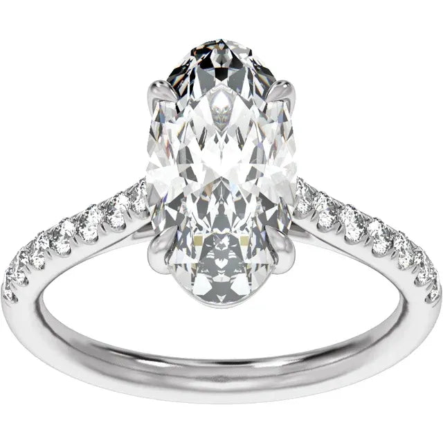 Long Oval Hybrid Lab Grown Diamond Accented Solitaire Ring