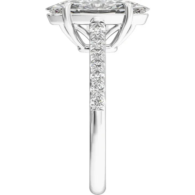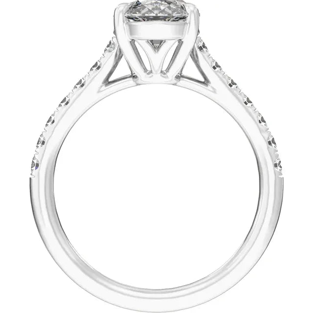 -14K white gold ring with a 2ct Elongated Hybrid Oval Cut & 1/3ctw in accent diamonds. All diamonds are lab grown.