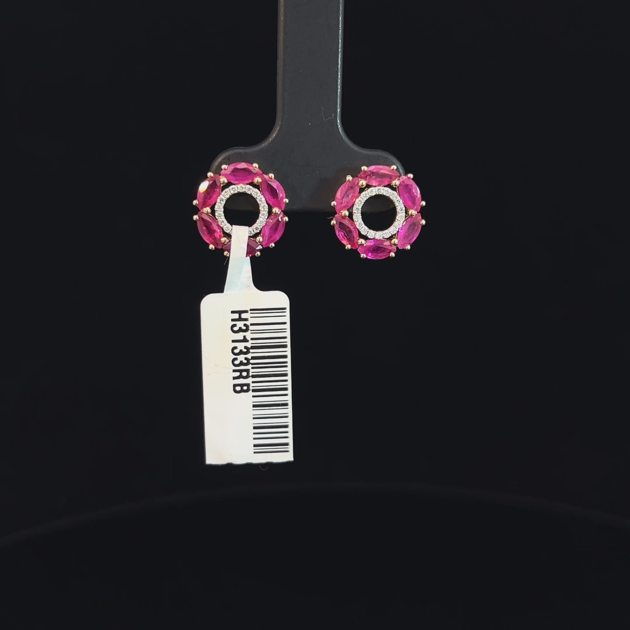 Ruby & Diamond Geometric Halo Earrings