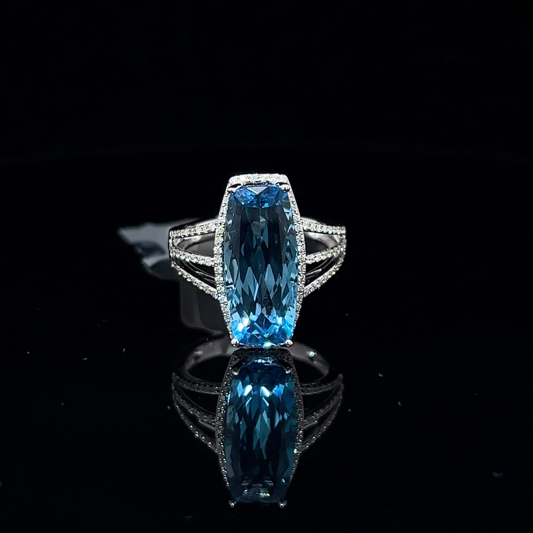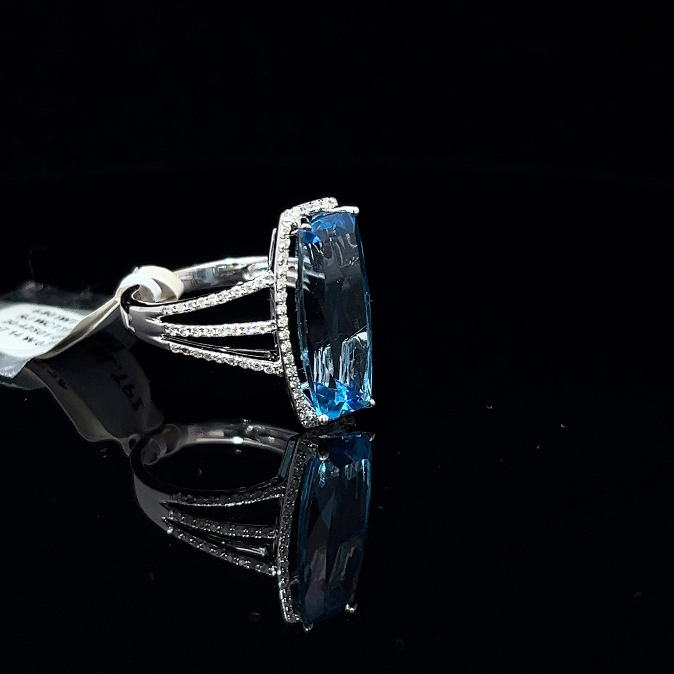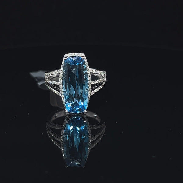 Fancy Shape Hybrid Swiss Blue Topaz and Diamond Ring